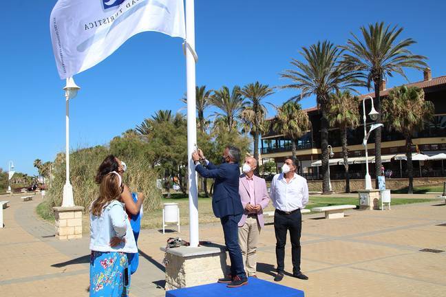 La Playa de Islantilla ha exhibido hoy oficialmente los tres distintivos más importantes en materia de calidad turística, infraestructuras y gestión medioambiental de las actualmente vigentes en España y en Europa: la Q de Calidad Turística, la Bandera Azul y la Bandera de EcoPlayas.