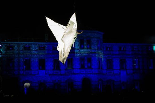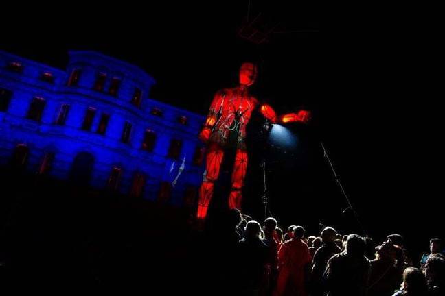 Pero uno de los instantes más esperados llegaba con la aparición del “gigante”, una estructura de 8 metros, que caminaba iluminado entre el público en un paseo majestuoso de ambiente cósmico y sonidos electrónicos. Una alegoría de la responsabilidad del hombre en nuestro entorno.