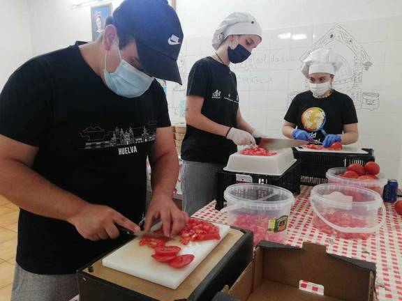 Con el inicio de la desescalada, la Asociación Juvenil Carabela decidió coger las riendas del servicio y el pasado 8 de junio, montó su propia cocina solidaria con el objeto de seguir alimentando a los 50 usuarios que venían recibiendo esta ayuda por parte del Ayuntamiento de Huelva.