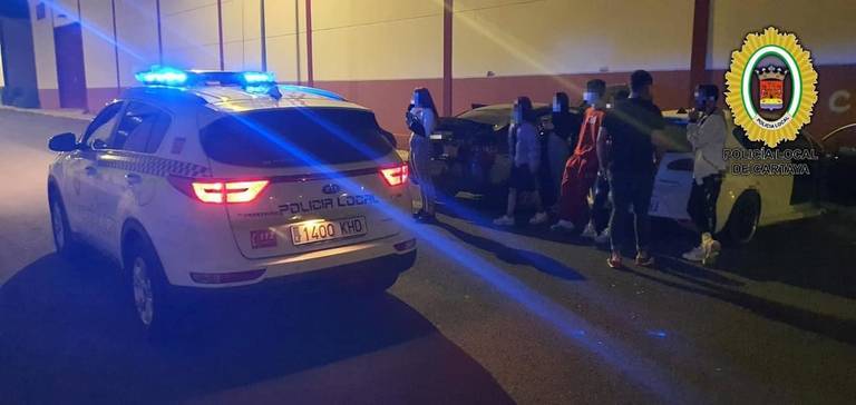 Los agentes observan como una decena de jóvenes se encontraba junto a dos coches "discoteca", bailando, bebiendo y sin hacer uso de mascarillas