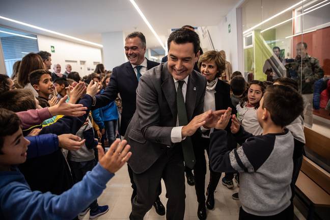 El presidente de la Junta de Andalucía, Juanma Moreno, ha inaugurado este lunes las nuevas instalaciones del CEIP Manuel Siurot en La Palma del Condado (Huelva), donde ha asegurado que el Gobierno andaluz está firmemente comprometido con la educación pública de calidad. Prueba de ello, según ha detallado, han sido los 230 millones de euros más que su Ejecutivo ha destinado en los Presupuestos de 2020 a Educación, lo que supone un récord en inversión que se acerca a los 7.000 millones.
