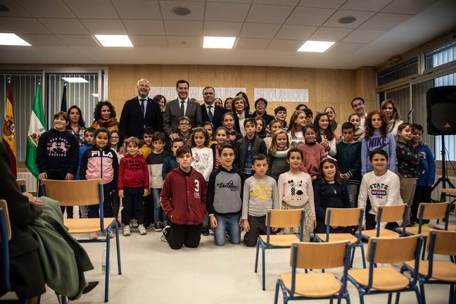 Acompañado del consejero de Educación y Deporte, Javier Imbroda, Moreno ha reconocido la labor de los docentes, que "muchas veces no disponen de los medios suficientes para desarrollar con plenitud su vocación y, aun así, dan lo mejor de sí mismos". Asimismo, se ha mostrado orgulloso de la implicación de toda la comunidad educativa en lo que "creemos fundamental y prioritario: la educación".