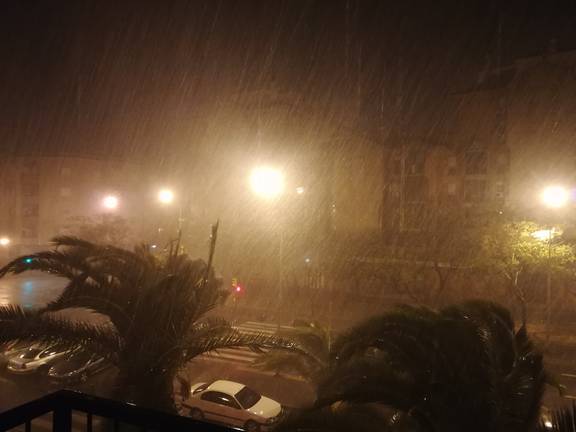 La última tormenta de la jornada descargó ayer noche miércoles (las 23.30) sobre la capital onubense y en apenas diez minutos se apreció la fuerza de barrida del viento y el granizo, con palmeras partidas y calles a punto de inundación. Algunas imágenes hablan por sí solas del temporal. La Agencia Estatal de Meteorología (Aemet) prevé mantener durante la jornada de este jueves día 1 de marzo avisos de nivel naranja en las provincias costeras andaluzas -Huelva, Cádiz, Málaga, Granada y Almería-, así como en Jaén, por lluvias, viento o fenómenos costeros- y de nivel amarillo por fuertes vientos en las ocho provincias de Andalucía.