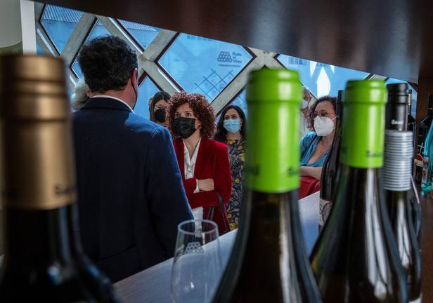 Acompañada durante el recorrido por el alcalde de Bollullos, Rubén Rodríguez, la presidenta también ha visitado las Bodegas Privilegio del Condado, donde ha conocido su nuevo producto Chida Blue, una refrescante bebida con un bajo porcentaje en alcohol elaborado a base de vino con frutas, fundamentalmente frutos rojos. Una bebida novedosa que llega al mercado para gustar a los más jóvenes, con su sabor dulce y afrutado inspirado en los olores y sabores de Andalucía.