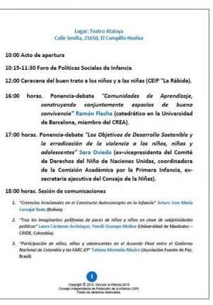 El evento tendrá lugar a partir de las 10.00 horas y el objetivo general de esta actividad es el de incidir en las políticas públicas de la infancia para expandir las buenas prácticas en la infancia y que sean referentes internacionales en este ámbito.