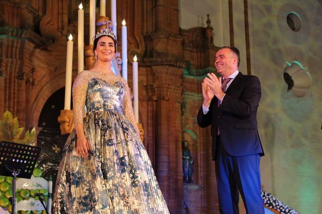 Tras sus palabras el alcalde coronó a Miriam Ortiz García como Reina de la Vendimia quien presentó a sus Damas de Honor y expresó la emoción y gratitud por ser parte de esta fiesta con tanta tradición.