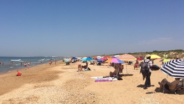 La primera ola de calor del año, antes incluso de que llegue el verano, ha provocado una 'huida' hacia las playas. Los onubenses y visitantes se han lanzado a disfrutar de la costa con la subida de las temperaturas, que ha llevado a la Agencia Estatal de Meteorología a establecer el aviso naranja en Huelva, con máximas de 39 grados en el litoral, 40 en la Sierra y 41 en el Condado y el Andévalo.