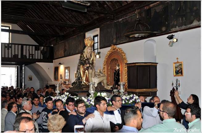 Este sábado la Virgen de Las Angustias presidió en la Residencia de Mayores “Lerdo de Tejada” de la localidad una eucaristía de despedida en la que la que la dirección del centro, trabajadores y residentes y la Asociación Juvenil La Cruz ofrecieron a la Patrona una corona de flores que recuerda a la que esta venerada imagen portó en la jornada de su Coronación Canónica y con la que la Virgen se despidió de su primer destino en estas peregrinaciones.