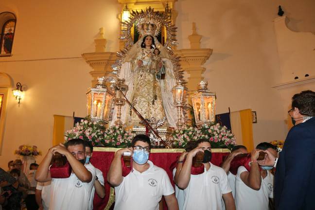 Precisamente en este cambio de recorrido estuvo la principal novedad de una salida procesional de carácter extraordinario, que se celebró en el día de la Onomástica de la Virgen y tras la misa que se ofició en la Iglesia Parroquial del Apóstol San Pedro. Desde allí, partió la patrona a hombros de sus costaleros y acompañada por un amplio cortejo que encabezaban el presidente de la hermandad del Rosario, Manuel Morales, y su junta directiva, y la Corporación Municipal, presidida por la alcaldesa, Pepa González Bayo. También asistieron las autoridades civiles y militares, representantes del resto de hermandades de la localidad y numerosos devotos de la Patrona.