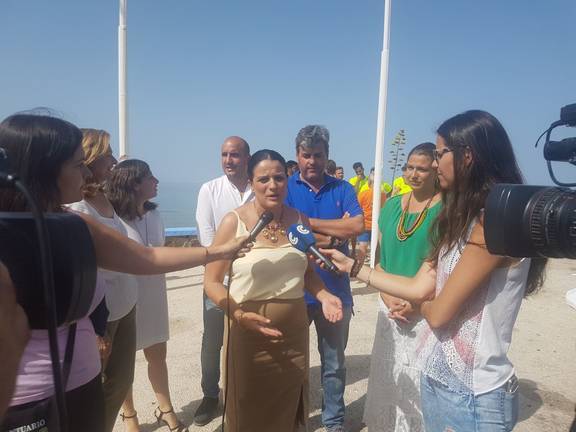 La alcaldesa de Almonte preside el acto de izada de los distintivos que confirman el buen estado del litoral almonteño