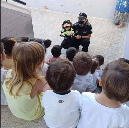 La Policía de Almonte, acompañada de sus marionetas Doris y Paz han enseñando al alumnado más menudo conceptos básicos para su seguridad tanto frente a extraños como en la seguridad vial.