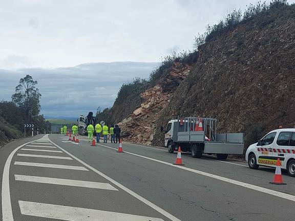 Las lluvias provocan el derrumbe de un talud en la Nacional 435 que une Valverde y Zalamea