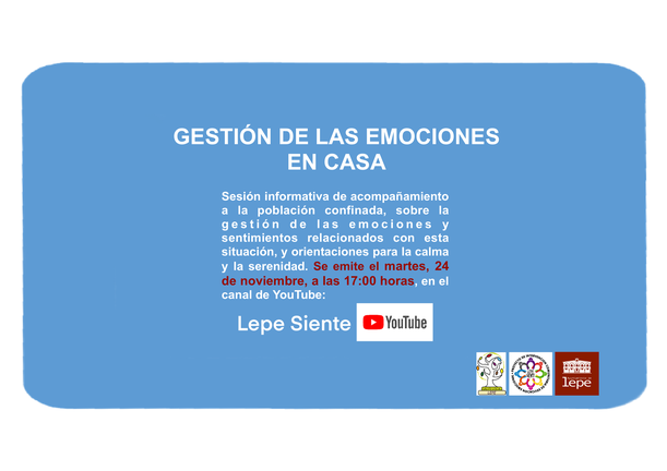 La sesión, que tendrá lugar el martes 24 de noviembre a partir de las 5 de la tarde en el canal de Youtube de Lepe Siente, ofrece la posibilidad a la población de enviar previamente preguntas que se quieran abordar, a través de las redes sociales de Lepe Siente o de la dirección de correo electrónico lepesiente@lepe.es