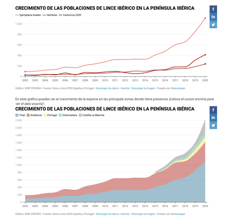 Sólo en Andalucía el Proyecto Life Lynxconnect, que lidera la Junta de Andalucía, apuntaba que la población del lince había crecido un 10,7% hasta contabilizarse 506 ejemplares distribuidos por una superficie que supera los 1.600 kilómetros cuadrados.
