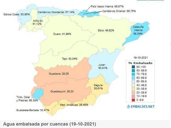Cuestión muy distinta es la Cuenca Tinto/Odiel/Piedras, que tras las lluvias torrenciales de septiembre mejoró su estado. La zona es de las mejor posicionadas de España por agua embalsada.