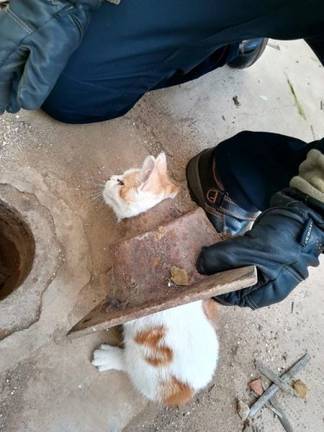Bomberos del Consorcio Provincial de Huelva han rescatado a un gato atrapado en un desagüe de Valverde del Camino.