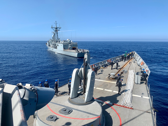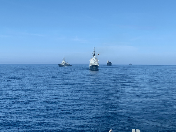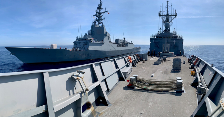 En aguas del Golfo de Cádiz, las fragatas “Numancia”, “Reina Sofía”, Álvaro de Bazán” y “Blas de Lezo” ejecutan ejercicios de dificultad progresiva conducidos por el Comandante de la 41ª Escuadrilla de Escoltas. El calendario de actividades está enfocado al planeamiento y a la ejecución de operaciones en el ámbito litoral recogido en el programa de adiestramiento de las unidades, necesario para mantener la capacidad operativa de los buques para participar en las operaciones en las que España está comprometida, en beneficio de la seguridad internacional y de los españoles.