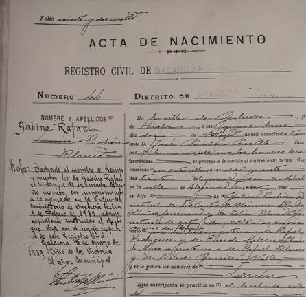 Gabino Pachón Blanco nació en esta localidad serrana, el 2 de mayo de 1933. Sus padres, Gabino y Celia, le inscribieron con el nombre de ‘Lenin’, y así aparece en el acta de nacimiento del Registro Civil de Galaroza, en el folio 22 vuelto. Sin embargo, tras la finalización de la Guerra Civil, el juez municipal procedió a eliminar este nombre y a imponerle los de Gabino Rafael. Así consta en una anotación marginal con fecha 5 de mayo de 1939, “Año de la Victoria”.