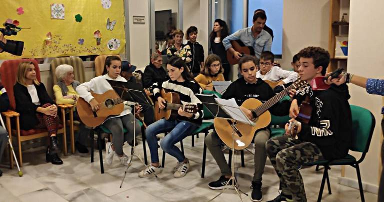 El encuentro ha estado protagonizado por los residentes del centro y un nutrido grupo de alumnos y alumnas del Conservatorio Elemental de Música ‘Vicente Sanchís’ de la localidad y, a lo largo de la jornada, han podido compartir experiencias y disfrutar de la música.