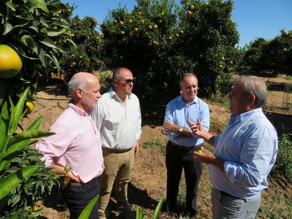 Acompañado por el Presidente de la Asociación, Lorenzo Reyes, el Gerente, Juan Manuel Bernal y uno de sus directivos, Jaime Tueba, el delegado territorial ha podido comprobar el volumen de cítricos extratempranos y de sus tres principales variedades ya recolectadas estos primeros días de campaña así como su alta calidad a través del recorrido que han realizado por esta finca de 300 hectáreas para el cultivo de cítricos donde estos días pasan de tener 35 trabajadores de manera permanente a los 250 trabajadores en las semanas de plena producción en las tareas de recolección.