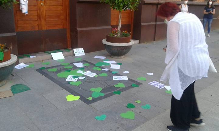 La protesta se desarrolló junto al Ayuntamento de Nerva y a sus puertas se depositaron corazones verdes, simbolizando peticiones como 'empleo sano y seguro, 'Nerva necesita empleo sostenible' y reclamaron el cierre de la instalación.