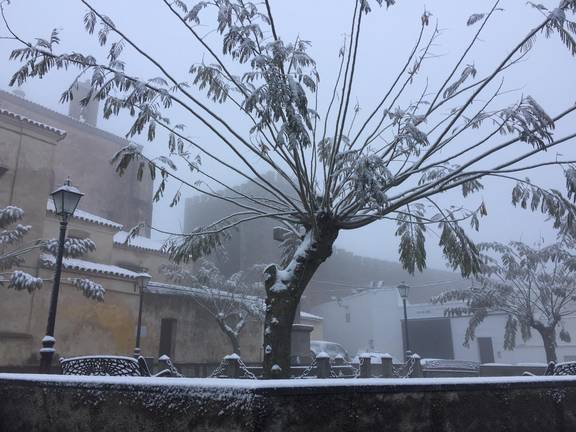 La gente se echaba a la calle desde muy temprano para contemplar sus pueblos teñidos de blando por una nevada que aunque no ha sido tan copiosa como otras históricas en la Sierra sí que cambió por unos días el verde de los campos y dehesas.