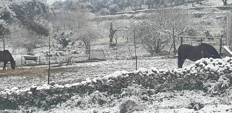 La mañana dominical al alba la nieve ya teñía de blanco toda la comarca dejando un paisaje idílico.