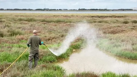 El jefe del Servicio de Control de Plagas ha indicado que “si bien el uso de biocidas constituye una parte importante de la estrategia de control de las plagas de mosquitos en la costa de Huelva, conviene recordar, no obstante, el papel cada vez más relevante que representa la gestión ambiental de las zonas de inundación mareal”.