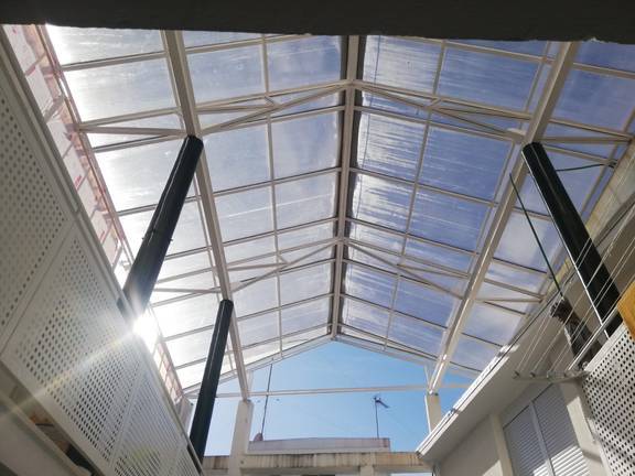 La intervención se contrató de nuevo, el pasado mes de junio, y ha consistido en la mejora de los espacios e instalaciones comunes de los cuatro bloques que conforman esta promoción, sustituyendo o reparando en su caso los cerramientos de lamas de los patios y las instalaciones interiores de estos espacios de uso común.