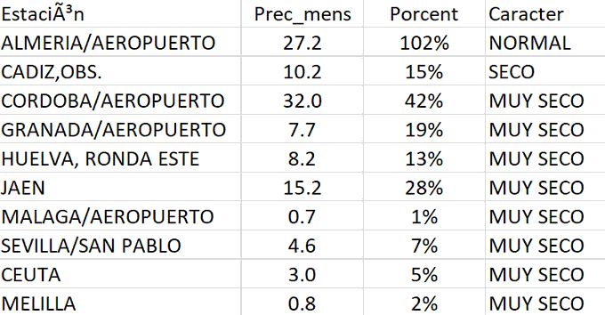 Con un promedio de 66 mm, la mayor precipitación caía en octubre. Así que vamos a peor climatológicamente hablando.