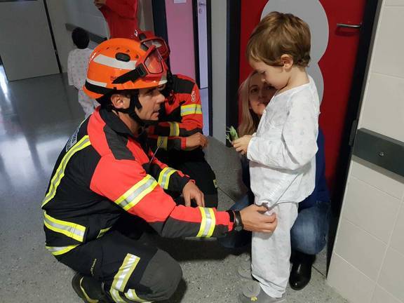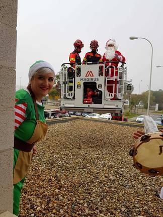 Así, Papá Noel ha llegado hasta la segunda planta en la cesta de un camión escala para sorprender a los más pequeños al entrar por una de las ventanas de la Unidad de Pediatría, cuidado en todo momento por los efectivos de la Unidad de Rescate Urbano del Servicio de Extinción de Incendios. Además, este año le han acompañado un buen número de ayudantes y de elfos, quienes han estado trabajando desde primera hora de la mañana para que todo estuviera a punto cuando llegara Papá Noel.