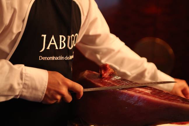 La Denominación de Origen Protegida Jabugo es un reconocimiento que la Comisión de la Unión Europea otorga solamente a aquellos jamones y paletas que, procediendo de cerdos ibéricos criados y engordados en libertad con bellotas y pastos naturales durante la montanera en las dehesas de Andalucía y Extremadura, han sido elaborados de forma artesanal en los secaderos y bodegas naturales bajo unas condiciones microclimáticas únicas.