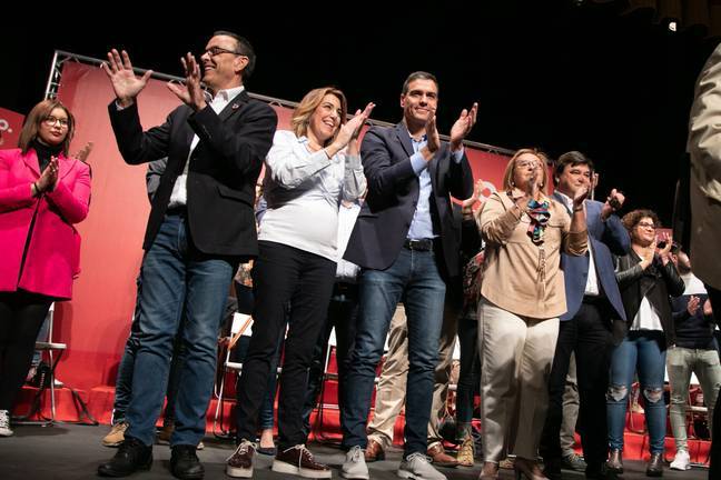 En el acto ha participado también el alcalde de Huelva, Gabriel Cruz, y la número uno al Congreso, María Luisa Faneca, junto a Susana Díaz, a quien Pedro Sánchez le ha tendido la mano para volver a ser presidenta: "Pronto, pronto lo vas a volver a ser. Y vamos a echarte una mano para que lo seas cuanto antes".