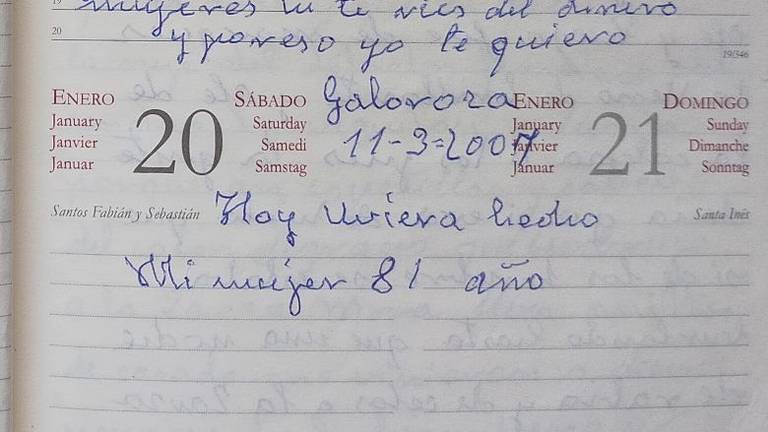 Algunos de los pasajes de Pepe son tremendamente emocionales, al recordar a su familia. Así, escribe que “el día 17 de noviembre de 2005 me pasó lo más malo de mi vida, se me fue la compañera, la que no olvido ni un momento”. Más referencias a Aurelia se recogen el día de su cumpleaños y a lo largo de los escritos.