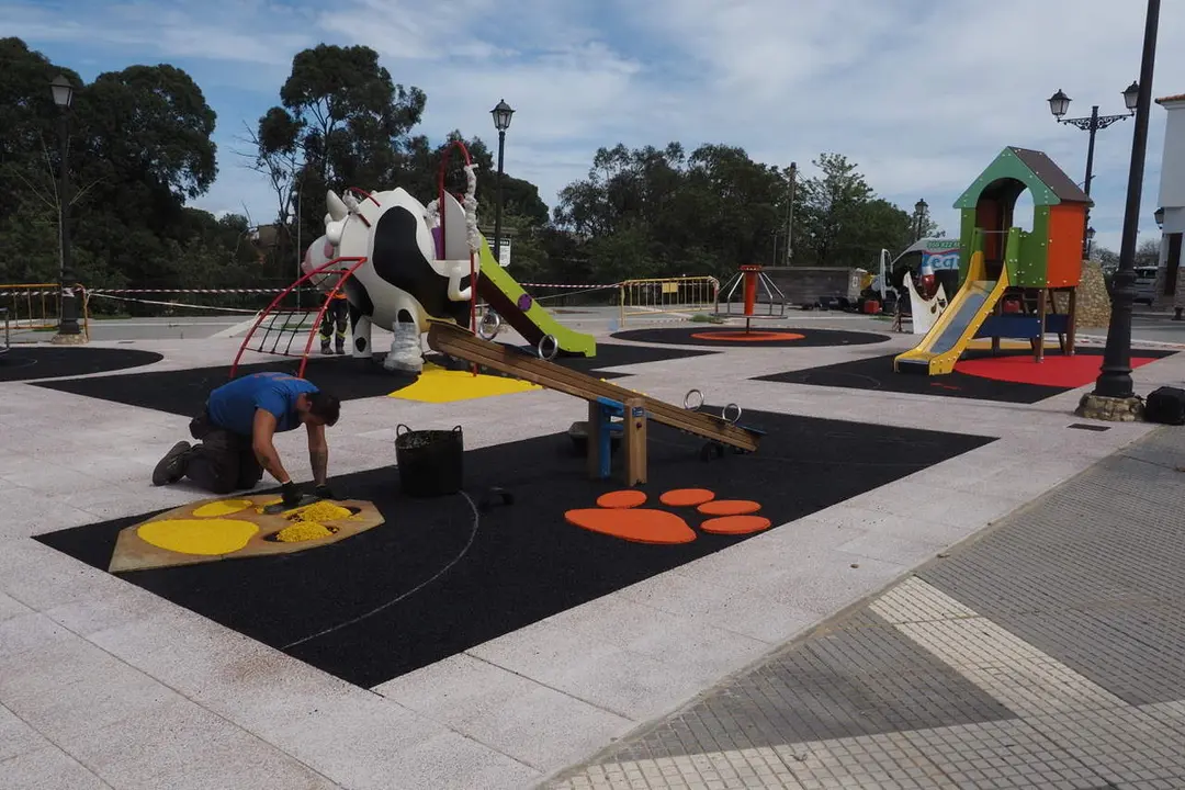 En unos días se completará la remodelación del parque infantil de la Plaza de La Paz de Palos de la Frontera. Tras la eliminación de los anteriores elementos de juego y la creación de una superficie hormigonada en sustitución a la zona de arena, los jóvenes palermos podrán disfrutar de los nuevos toboganes, balancines y columpios con una alfombra de caucho. Un espacio totalmente reformado y seguro, diseñado para la diversión.