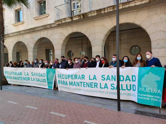 A esta concentración de la Plataforma hoy en la Delegación territorial de Salud y Familias, se han sumado los secretarios generales de UGT y CCOO en Huelva, Sebastián Donaire, y Julia Perea, respectivamente, quienes han pedido también a la ciudadanía que participe masivamente en la concentración del sábado 19 de febrero.