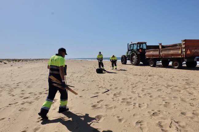 A lo largo de la jornada de hoy, el Ayuntamiento de Huelva está acometiendo una limpieza de choque en la playa del Espigón, que está llevando a cabo la Concejalía de Hábitat Urbano e Infraestructura en coordinación con la de Urbanismo, Medio Ambiente y Transición Ecológica. En paralelo, desde el Consistorio se han publicado los procedimientos en el departamento de contratación para que los servicios de balizamiento y socorrismo en este espacio puedan activarse con el arranque del Plan de Playas, habida cuenta de que la temporada de verano no queda inaugurada oficialmente hasta el próximo 15 de junio, aunque está permitido el baño, ya que solo Almonte mantiene cerradas sus playas en la provincia.