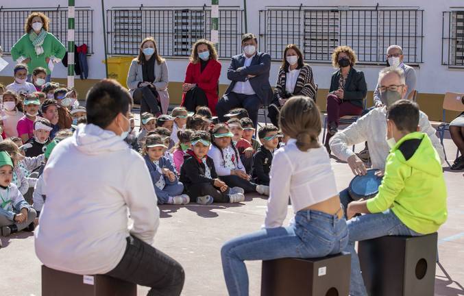 A continuación, han ido actuando los distintos grupos educativos al son de clásicas canciones andaluzas como “verde que te quiero verde” o “así es Andalucía”. Los asistentes han disfrutado finalmente de música andaluza cantada por Sergio Robles, el cual ha estado acompañado de su hija, antigua alumna del centro, y ha terminado el acto con el himno de Andalucía.