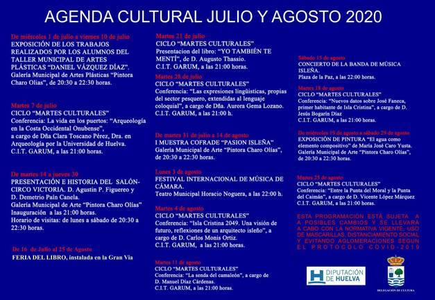 Isla Cristina retoma poco a poco su actividad social y cultural dentro de la denominada como 'nueva normalidad'. Es por ello que, desde el Ayuntamiento, a través en este caso, de la Delegación Municipal de Cultura, se ha diseñado un programa específico para estos meses estivales.