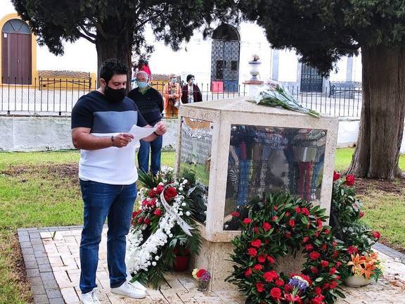 La militancia colocó una corona de flores y un ramo en el monolito que recoge los nombres y apellidos de todas las personas que fueron fusiladas en Ayamonte y que están inscritas en el Registro Civil.