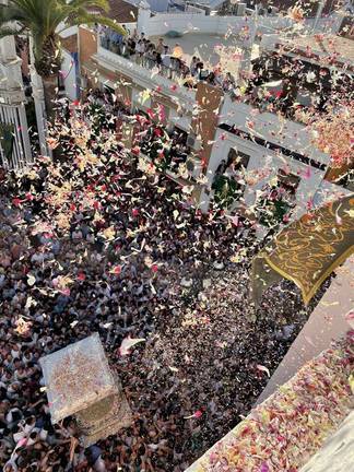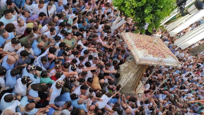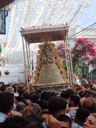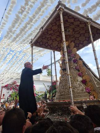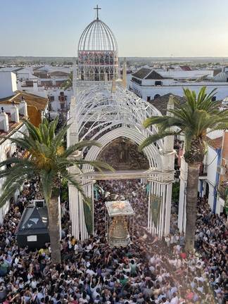 Petaladas por doquier, vivas, salvas, lágrimas y emociones contenidas tras casi tres años sin poder se llevada por su pueblo hasta lo más alto de los cielos almonteños, engalanados para un momento que ya es historia y preludio de lo que será el próximo fin de semana un traslado histórico.