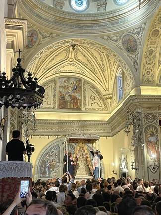 Eran las 20h36 cuando, tras casi 14 horas de procesión, la Virgen regresa a su altar. Rezo de la Salve como broche a un día desbordante de sentimientos.