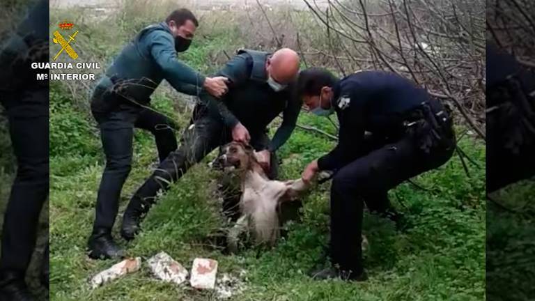 La Guardia Civil y la Policía Local de San Juan del Puerto, han rescatado a una perra del interior de un pozo que se encontraba desaparecida.
