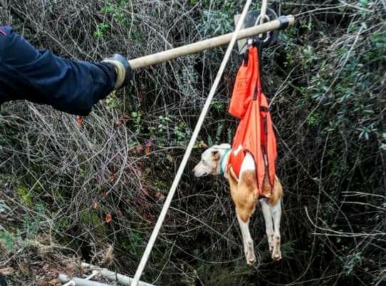 Con la colaboración de la Guardia Civil, la propiedad de la finca y mediante cámaras de visión térmica se localizó el pozo donde se encontraban los animales. Esta mañana se montó el dispositivo y se extrajeron con vida todos los perros.