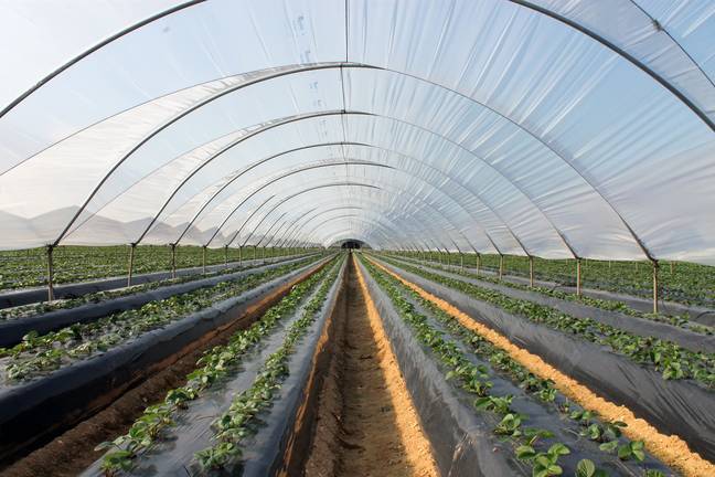 Tal y como refleja el informe al que ha tenido acceso diariodehuelva.es, la empresa SP Soluciones Agrícolas está facilitando a los agricultores la reducción en un 50 % del uso de plástico en sus cubiertas de invernadero. Ello es posible con Huelvasol, un plástico diseñado especialmente para las berries de Huelva, de 360 galgas de espesor y con garantía de 1 o 2 campañas. De este modo, si para cubrir una hectárea de fresas con la cubierta de invernadero tradicional de 600 galgas se necesitan unos 2.000 kilos de plástico, con Huelvasol sólo hace falta la mitad, unos 1.000 kilos, gracias precisamente a su menor espesor.