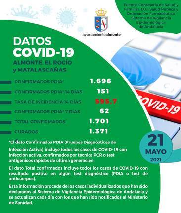 Por ello, además de este plan de emergencia municipal, ha pedido apoyo al resto de administraciones para garantizar la seguridad sobre todo teniendo en cuenta la alta tasa de Covid-19 en el municipio almonteño, que ronda los 600 casos PDIA/100.000 habitantes. Solo el decaimiento del Estado de Alarma el pasado 9 de mayo ha evitado que Almonte, El Rocío y Matalascañas estén cerrados perimetralmente al superar la tasa 500.