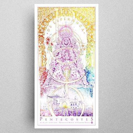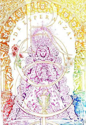 cartel anunciador de este #RocíoDeEsperanza. Una obra llena de luz y color, realizada en acrílico sobre tabla, por el artista de Mairena del Alcor, José Manuel Peña.