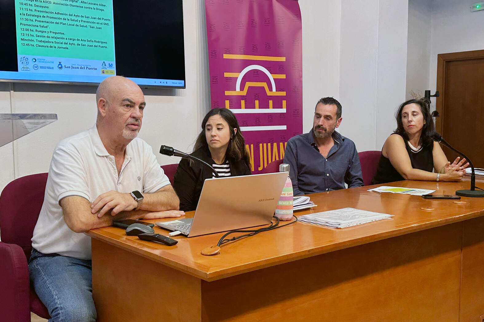 Durante la jornada se presentó la adhesión del Ayuntamiento a la Estrategia de Promoción de la Salud y Prevención en el Sistema Nacional de Salud (SNS) y se dio a conocer el Plan Local de Salud ‘San Juan Promociona Salud’, que permitirá planificar y coordinar acciones para mejorar el bienestar de la población. Este plan fue presentado por la técnico municipal Lucía Aquino y aprobado por pleno el pasado 31 de julio. Según Aquino, “con el diseño del Plan Local de Salud por parte del grupo motor, ahora pretendemos la planificación, ordenación y coordinación de las actuaciones en materia de salud pública en San Juan del Puerto”.