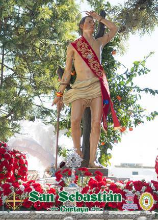 Cartaya recupera este año la procesión de San Sebastián, Patrón de la localidad y de la Policía Local, que recorrerá de nuevo y después de dos años, las calles del municipio, siguiendo su itinerario tradicional. Así lo han anunciado hoy en la presentación del cartel y de los actos en honor al Santo, la Hermandad del Stmo. Cristo de la Vera+Cruz, María Stma. de la Amargura, San Juan Evangelista y San Sebastián Mártir, y el Ayuntamiento, que colabora en la organización de los mismos.