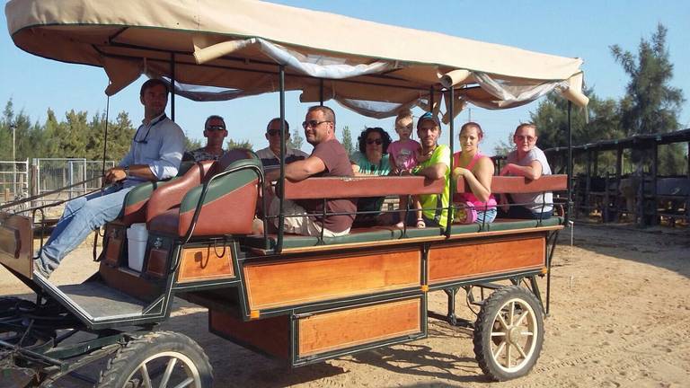 Durante el último día de estancia en El Rocío, este jueves, las seis familias pudieron disfrutar también de un paseo en coches de caballo, con el que se ponía fin a las actividades desarrolladas fuera del Camping La Aldea.